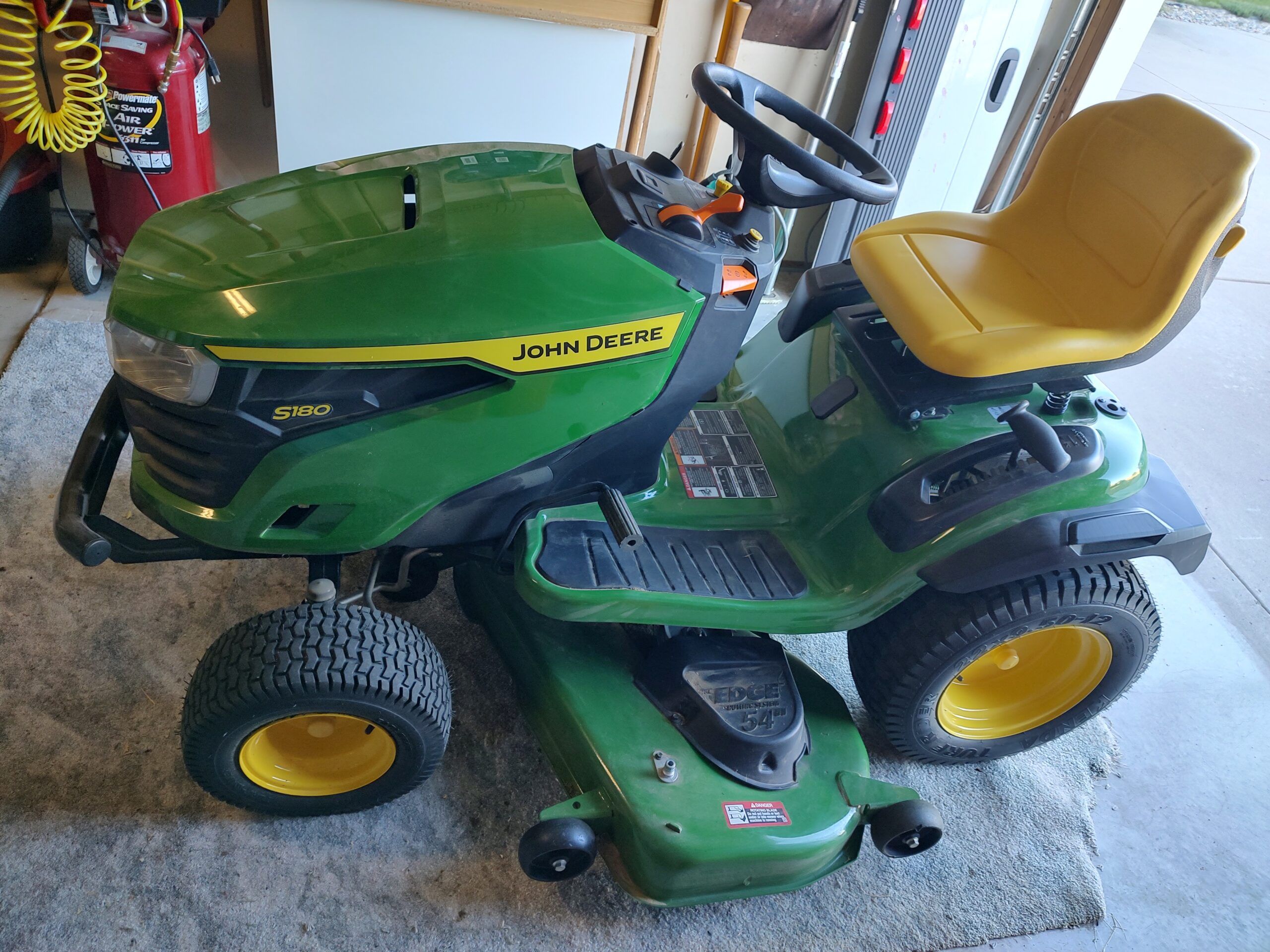 Brand New John Deere S180 Riding Lawn Mower, 54” deck, 14 hours; Craftsman GT 6000 Riding Lawn Mower, 54” deck, w/ Snow Plow & Cultivator, 149 hours; 4 pc Coleman Work Bench; Work Bench w/ Vise; Honda EMS 4500 Portable Generator; Echo Power Blower; Echo Chainsaw; Ego 56 Volt Rechargeable Weedeater; Cub Cadet Gas Weedeater; Toro Leaf Blower; Coleman Powermate 6311 11 gal Air Compressor; Craftsman Belt/Disc Sander; Craftsman Bench Grinder; Power Tools including Bosch, DeWalt, Kobalt, Craftsman, Ryobi; Hand Tools; Craftsman Heavy Duty Forked Hand Truck; Appliance Dolly; Shop Vac; Kerosene Stove; 100’ Garden Hose NIB; Lawn Ornaments; White’s Metal Detector; Extension Ladder; 6’ Werner Fiberglass Ladder; Heavy Duty Shelving Unit; Portable Camp BBQ; Fishing Poles; Camping Chairs; Ice Chests; Weed Sprayers; Battery Charger; Wrought Iron Plantstand.